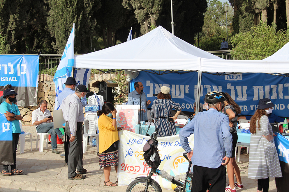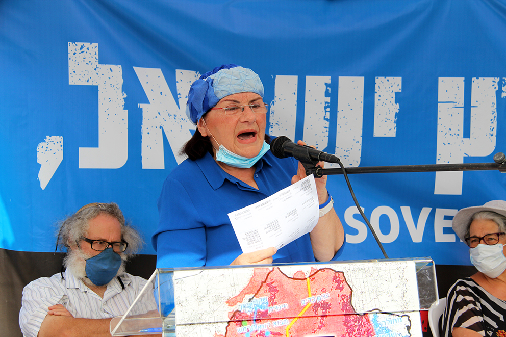 –Vi er her for å fortelle Netanyahu at Israels land tilhører Israels folk. Vi ønsker at Netanyahu skal innføre suverenitet. Det skulle vært gjort for lenge siden, men det må ikke knyttes opp til Trump-avtalen med snakk om en palestina-arabisk stat. Dette er vårt land. Hvorfor skal vi gi opp 70 prosent, spurte Nadia Matar.