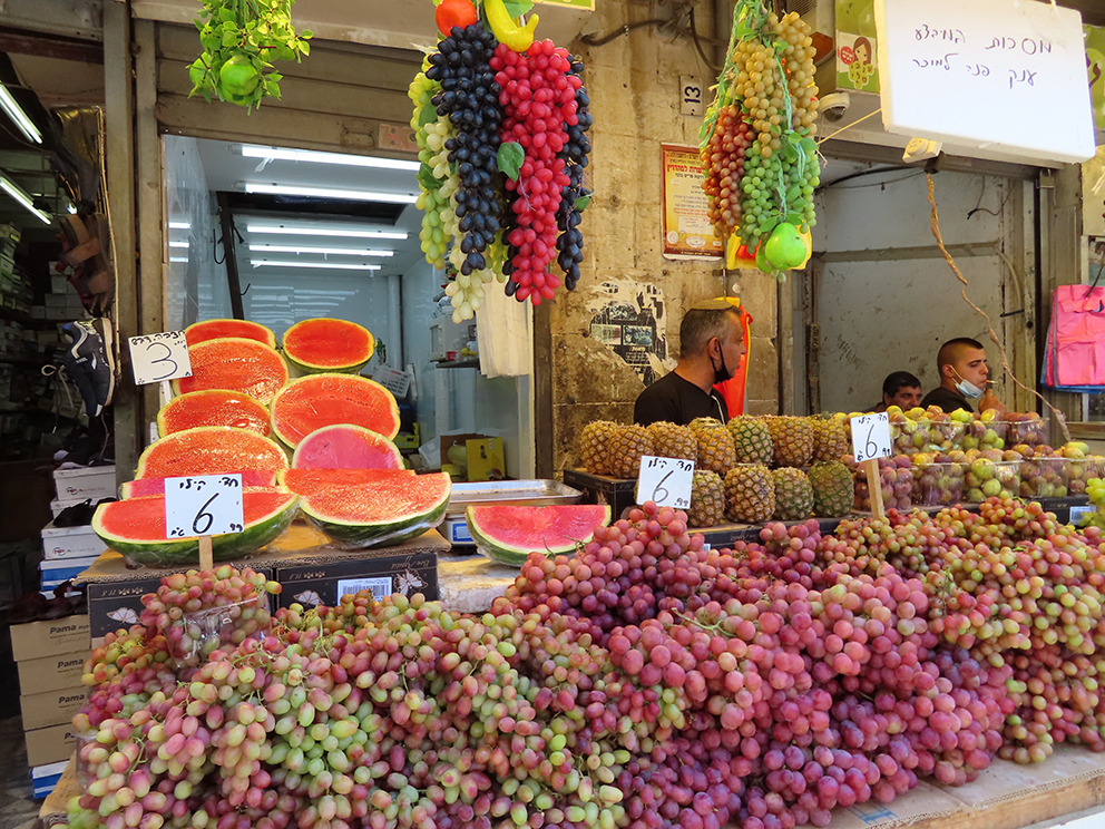Markedet Mahane Yehuda i Jerusalem bugner nå av israelske druer. De har vokst seg store i sommervarmen.