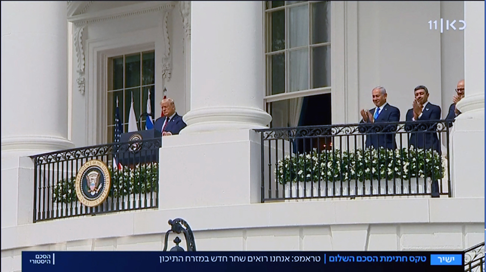 Til stede på seremonien for avtalen var USAs president Donald J. Trump, Israels statsminister Benjamin Netanyahu, Emiratenes utenriksminister Abdullah bin Zayed bin Sultan Al Nahyan og Bahrain’s utenriksminister Khalid bin Ahmed Al Khalifa.