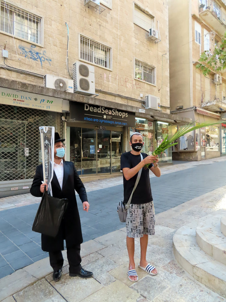 (08.10.2020): –Vil du lese bønner med lulav, spør ortodokse jøder de få som våger seg ut i Jerusalems gater i disse koronatider.