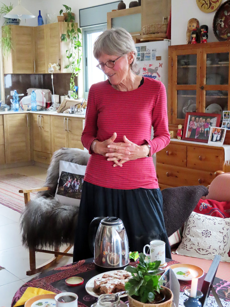 Hennes hjem de seneste år var i Moshav Givat Yearim, med utsikt over fjell og vakre israelske skoger, med Middelhavet i det fjerne. Ikke ulikt naturen Norge. Det var et norsk hjem. På veggen var det bilder av hennes forfedre, malerier fra hjemmemiljøet i Norge. Hun hadde også sin klassiske norske boksamling der.
