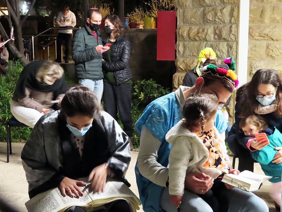 Det mest sentrale i purim-festen er å lese «megillat Ester» eller Esters bok. Til tross for koronapandemien forsøkte folk å samles i små grupper for å lese den bibelske fortellingen sammen.