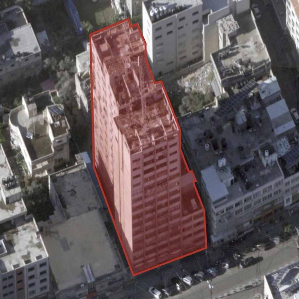 Israel angriper bygg og infrastruktur som huser terrorledere i Hamas. I noen tilfeller blir folk ringt opp og bedt om å evakuere før angrepet kommer. I al-Shourouk-blokka «banket» Israels forsvar på taket. Det skjer ved en rakett uten sprengstoff som varsler folk om å evakuere. Neste bombe tar blokka. Nede i kjelleren kan det være operasjonssentral eller skjulested for Hamas.
