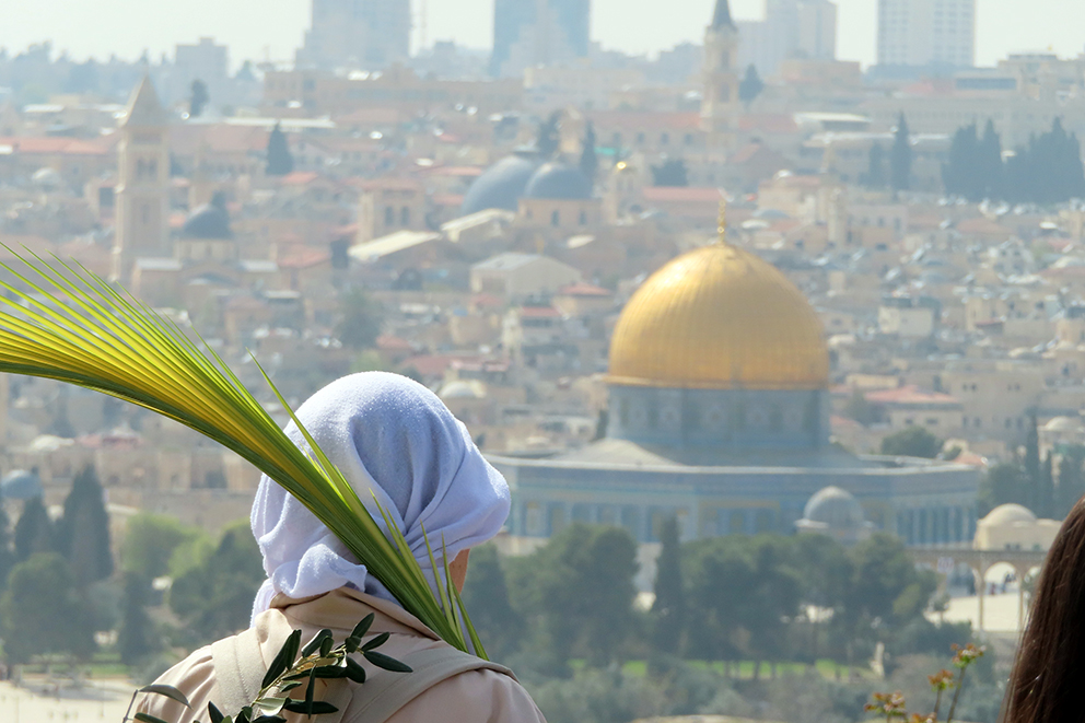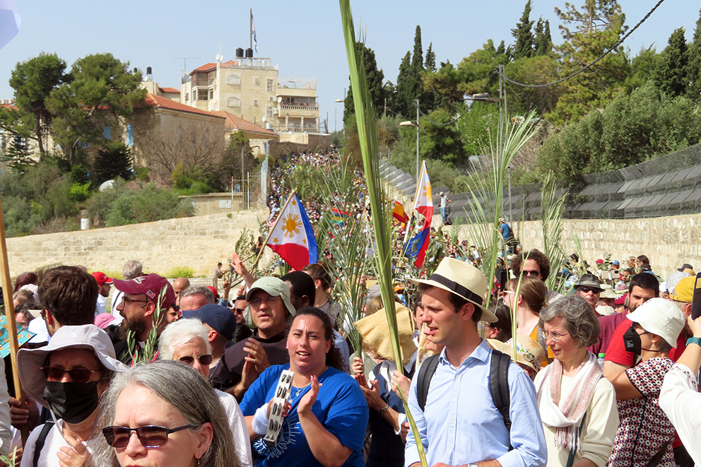 Det var på en «palmesøndag» at Jesus red på en eselhoppe fra Betfage over Oljeberget og ned til Jerusalem for 2000 år siden. Han ble hyllet som en konge, før Han ble korsfestet på langfredag. Menneskene bredte sine klær og la grener på veien foran Mesteren. I dag er det særlig katolske kristne som går strekningen i Mesterens fotspor.