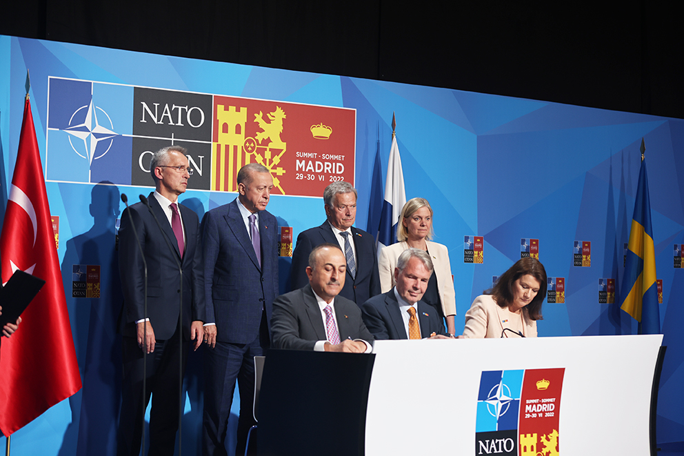 (28.06.2022): Etter fire timers forhandlinger i Madrid gikk Tyrkia med på at Finland og Sverige får bli med i NATO. Det ble klart tirsdag kveld, dagen før NATO-toppmøtet i Madrid.