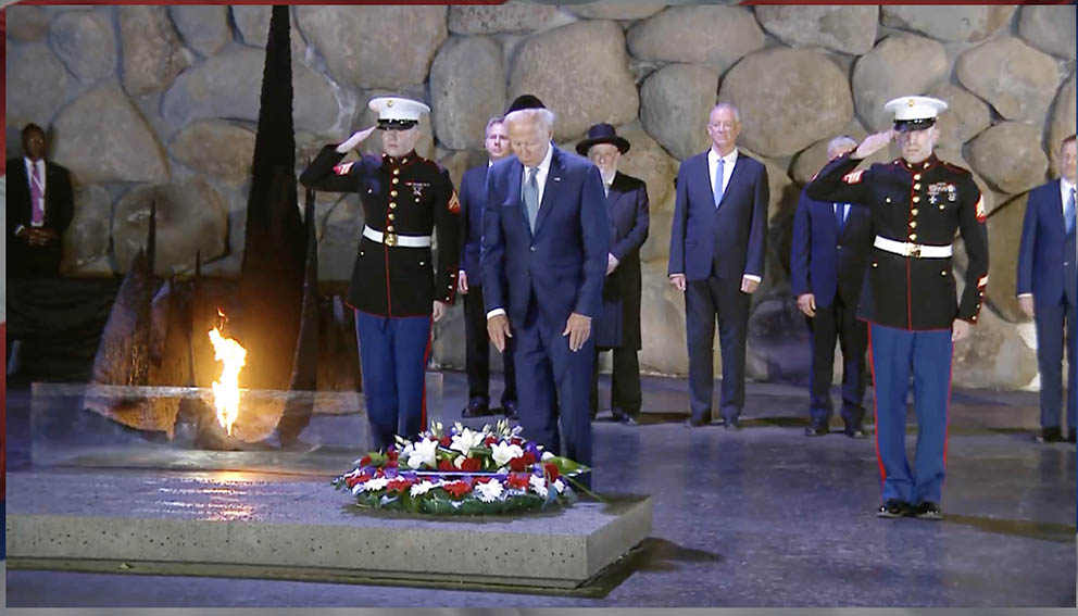 Biden fortalte da han kom til Ben-Gurion flyplass, at han var oppdratt av kristne foreldre og hørte også om holocaust. Biden sa også at da hans familie var i Europa tok han barna med for å se konsentrasjonsleiren Dachhau.