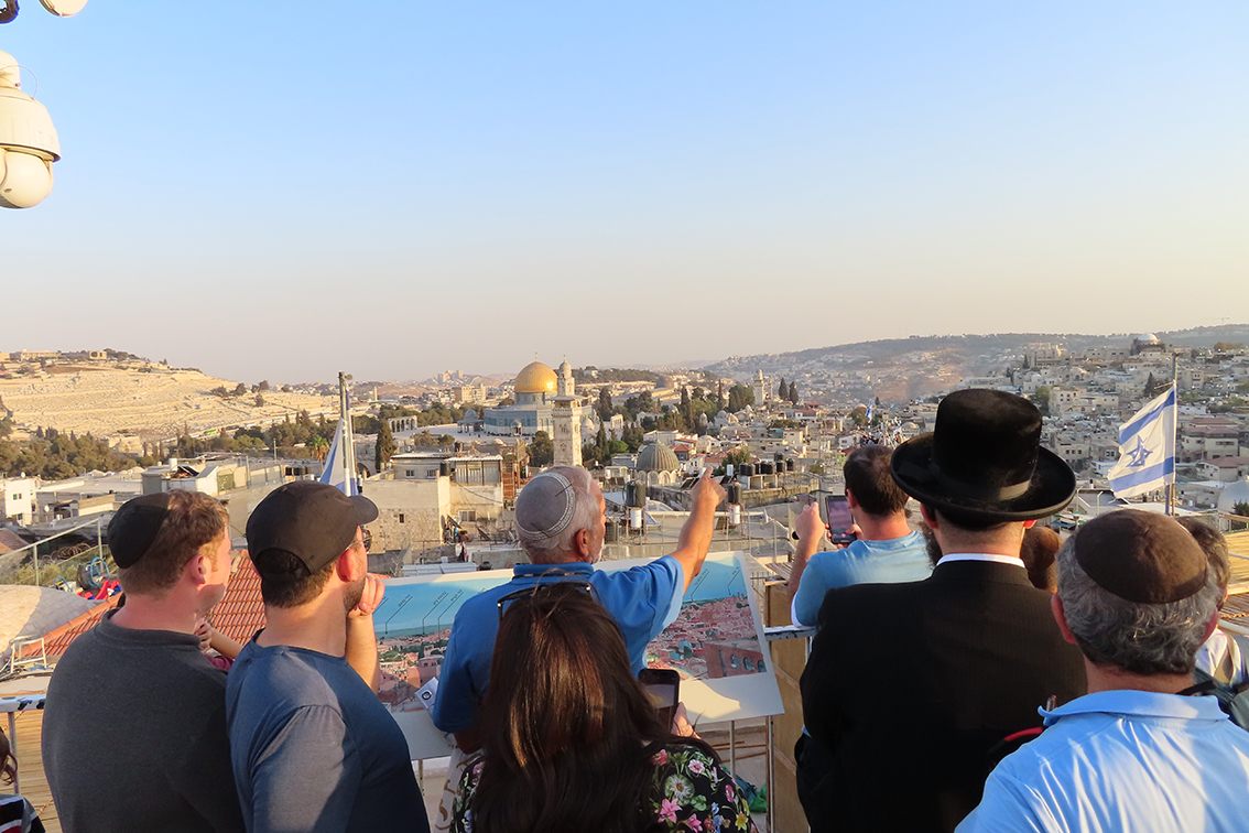 –Er det ingen som sier «wow» når de kommer opp på taket, da går vi igjen, sa Daniel Luria i Ateret Cohanim før et følge av sionister gikk opp.
