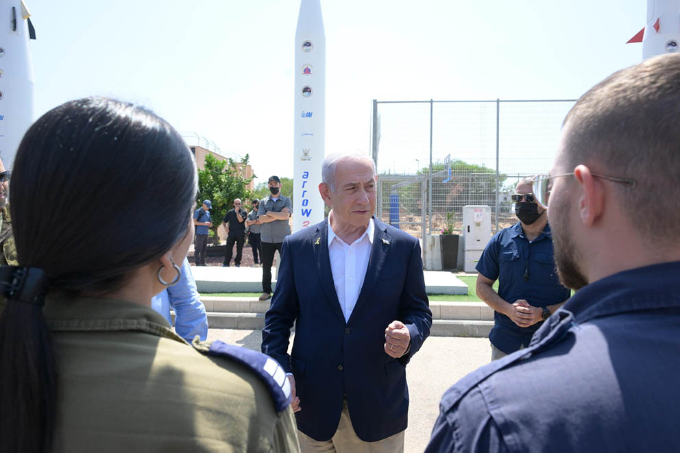 (23.06.2025): Statsminister Benjamin Netanyahu og flyvåpenets leder, generalmajor Tomer Bar besøkte Arrow-avdelingen på en av Israels flybaser, mandag. Arrow er en av Israels mest avanserte raketter som kan skyte ned angrepsraketter fra Iran. Netanyahu roste soldater og offiserer for deres bidrag til forsvaret himmelen over Israel.