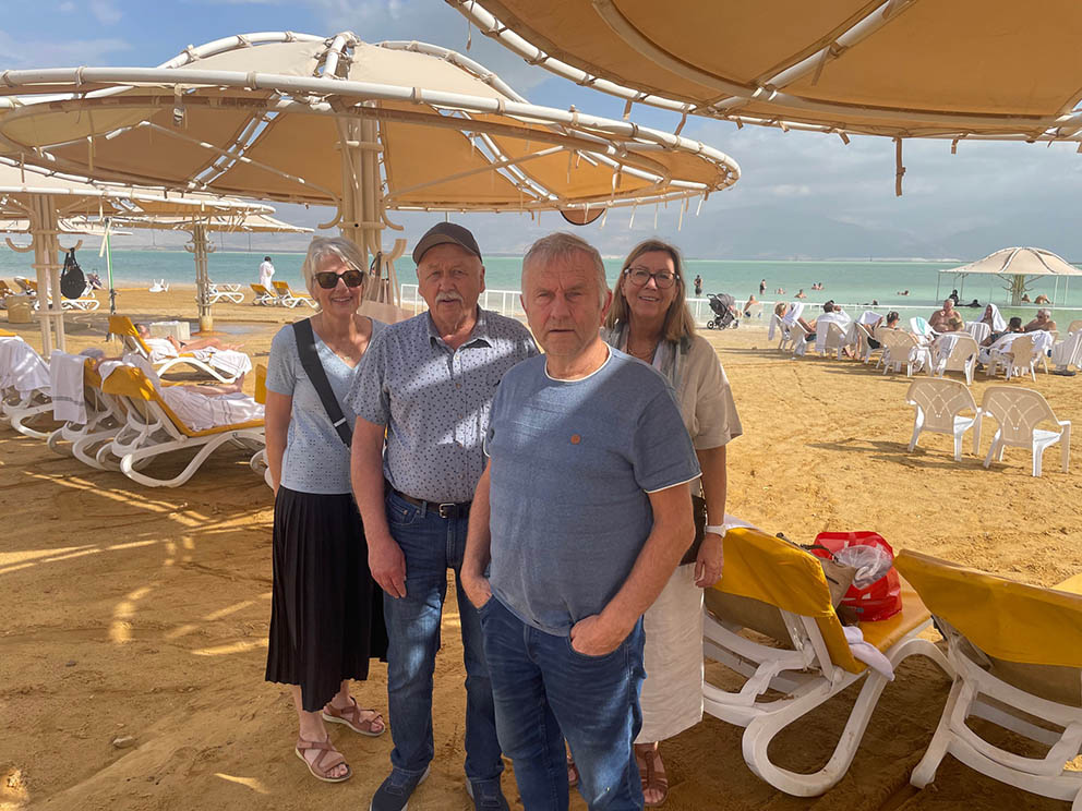 (15.11.2025): Turistene fra Norge kommer tilbake til Israel. Dette bildet viser nordmenn på KARMEL-tur ved Dødehavet lørdag. Les reisebrevet i papirutgaven av KARMEL ISRAEL-NYTT. (Foto: John Skåland)Utsikt over Dødehavet i Israel 15. november 2025. (Foto: John Skåland)