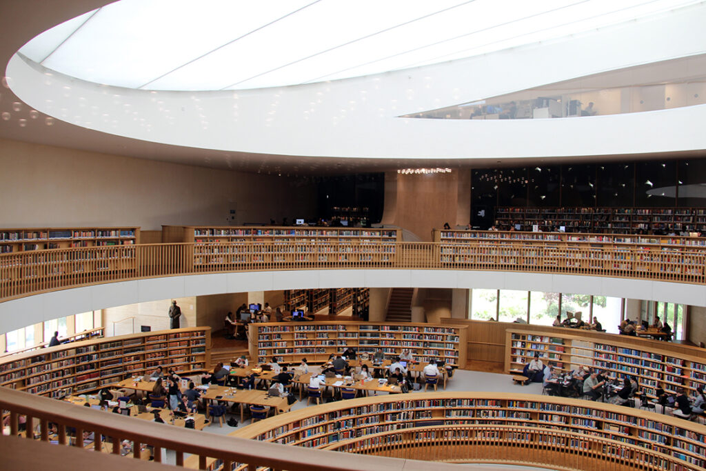 Miller og Neiman tok KARMEL med på en rundtur gjennom Nasjonalbibliotekets ganger og saler. Det har store vindusflater, og man kan se inn i de stille lesesaler. Om man registrerer seg og får et kort, åpner en hel verden seg med informasjon fra oldtiden til dagen i dag og fremtiden.