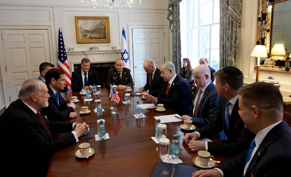 (11.02.2026): Israels statsminister Benjamin Netanyahu møtte onsdag USAs utenriksminister Marco Rubio i Blair-huset i Washington. Til stede var også USAs ambassadør i Israel, Mike Huckabee (t.v.). (Foto: Avi Ohayon, GPO)Statsminister Benjamin Netanyahu møtte onsdag utenriksminister Marco Rubio i Washington. (Foto: Avi Ohayon, GPO)